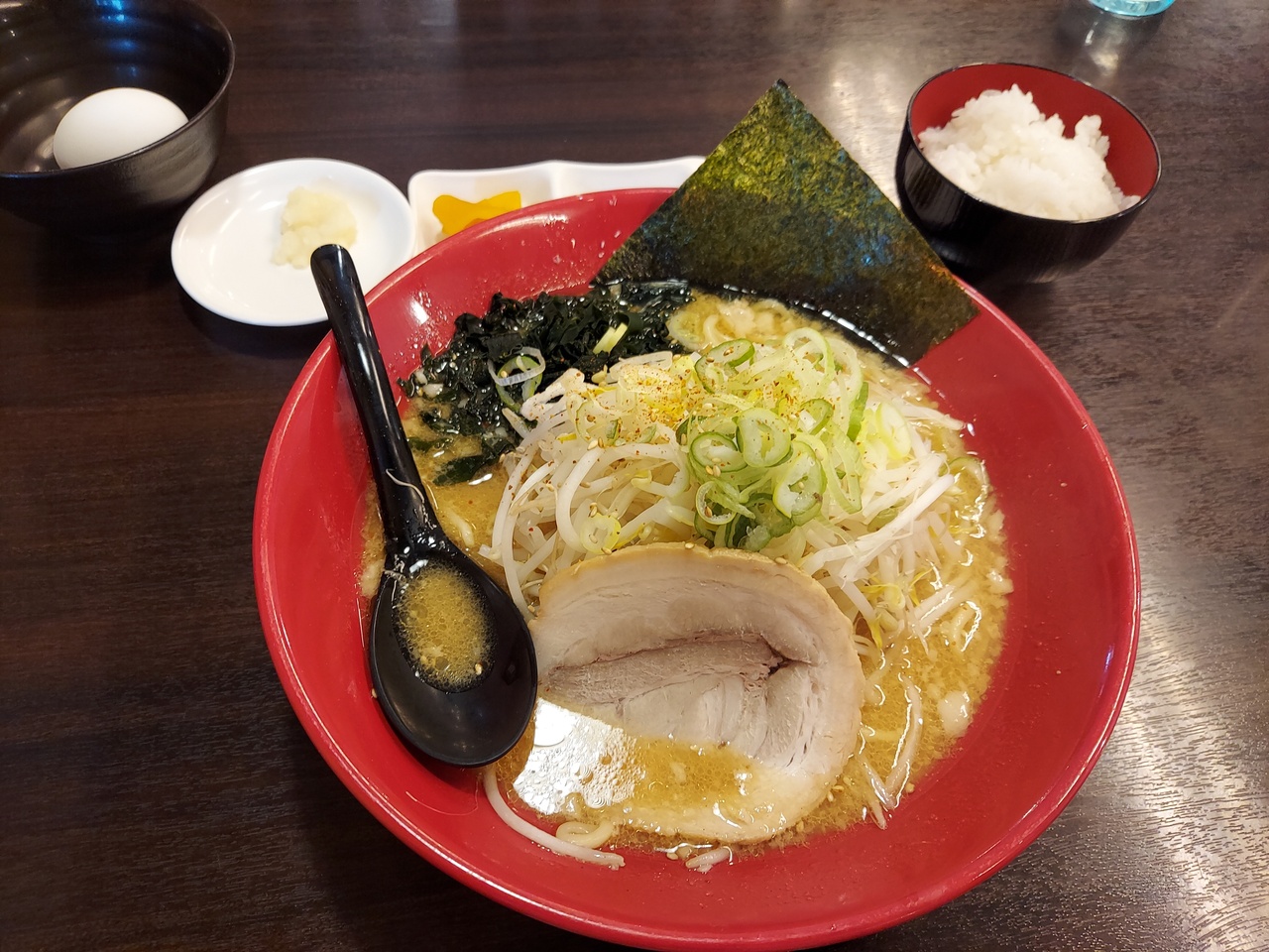 【味噌ラーメン専門】の看板に惹かれてお邪魔しました。結論から言うと味噌味の家系ラーメンのような印象で、美味しく頂きましたが、味噌ラーメン専門というところの特徴はさほど感じることができませんでした。ちなみにライスとお漬け物がセルフでおかわり無料は有り難いです。