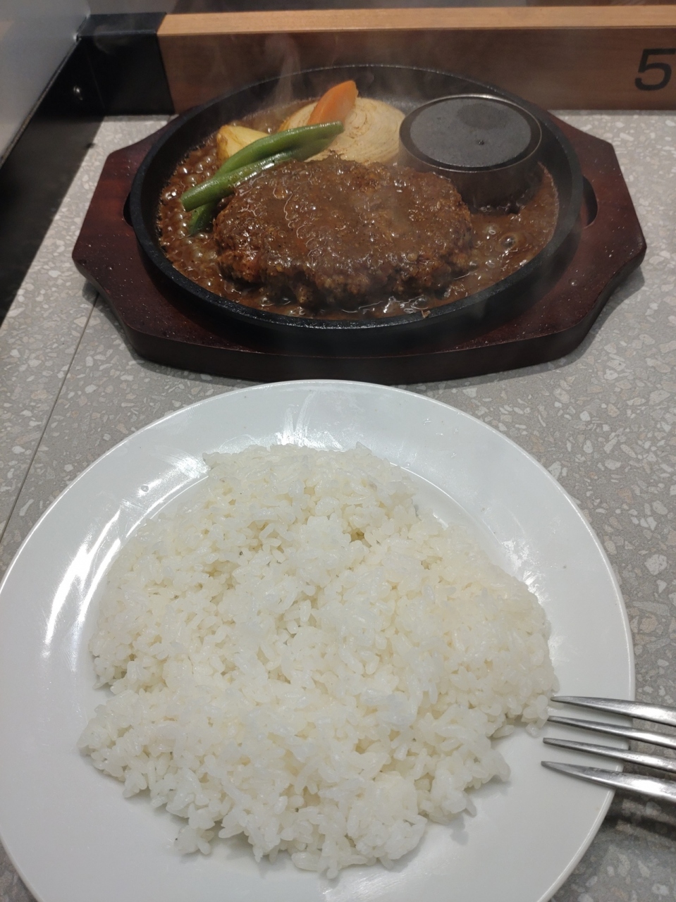 狸小路のメガドン・キホーテの入るアルシュビル5階にあるレストラン街にあるハンバーグのお店。つなぎなしの牛肉100%のハンバーグは、赤身を楽しむためミディアムでの提供が基本であること、ブラックペッパーとニンニクでパンチを効かせた甘みのあるソースは、琴似や札幌ファクトリーのお店と変わらない。しかし、コの字型のカウンター席のみで、食券式のためか、他のお店よりもかなりカジュアルな雰囲気。それにしては少し高め(他のお店と合わしているようだ)なので、「気軽に」とは言いづらい。コロナ禍で仕切りもしっかりできてしまったので、カップルや友人で行くのも難しい。焼石も意外に冷めやすいので、赤身が苦手の場合、よく焼いてもらったほうが良いかも。