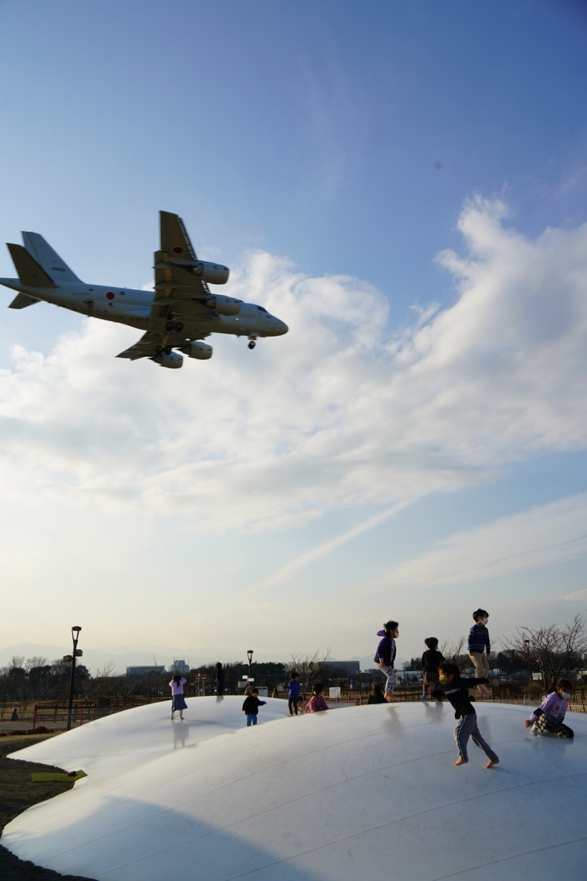 羽田や成田空港に近い公園はよくありますが、関東周辺では大型の公園の遊具で遊びながら最も近く見えるスポットではないでしょうか。