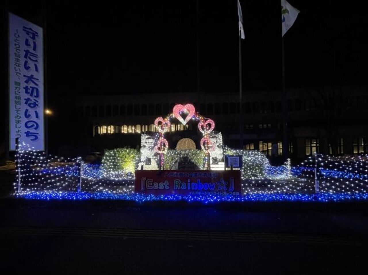 東近江市市制施行を記念して始まった〝East Rainbow☆〟。今年で17回目を数える滋賀県下でも歴史あるイルミネーションイベントのひとつとなっている。八日市商工会議所青年部の主催となっているが、エリア別のイルミネーション作成は個々の施設が担っており、公開後あまり早めに行ってしまうとまだ完成していない箇所も出てくるようだ。