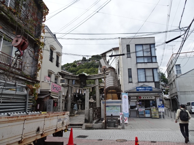 本通り商店街の駐車場に車を置いて、ロープウエイまでの乗り場まで数分ほど歩きます。