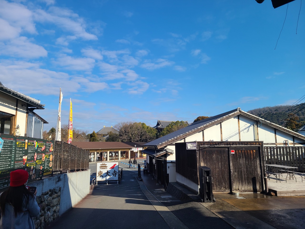 「夢風ひろば」は、大宮通りから、東大寺南大門横に抜ける道沿いにあります。中央のスペースを囲むように飲食店、お土産店が10店舗ほどあります。南大門参道にもお店はありますが、こちらは新しく、様々なお店が集まっていて便利です。