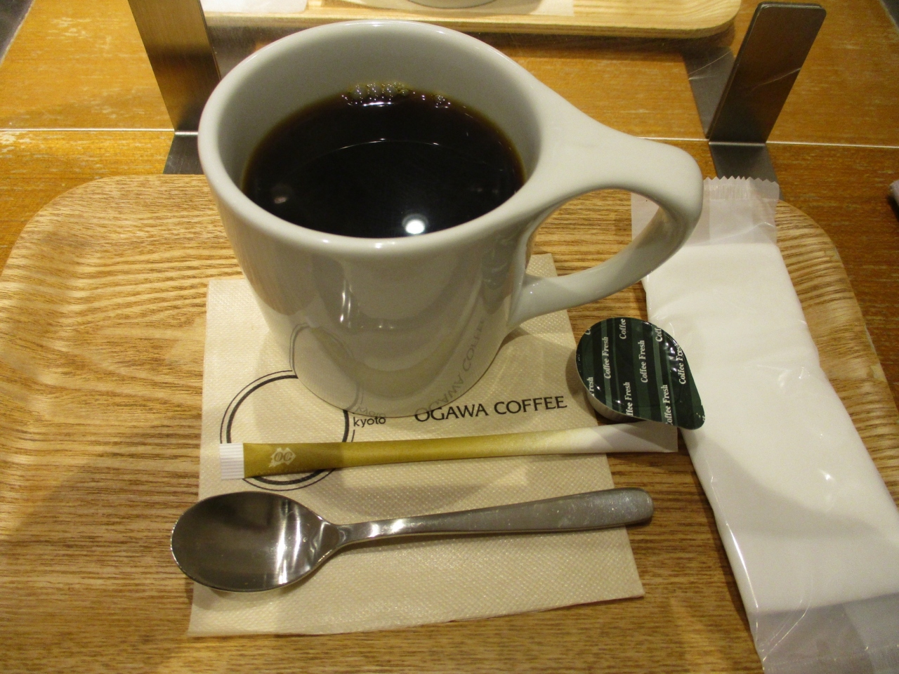 京都駅の地下街「コトチカ京都」に小川珈琲のお店があります。老舗の珈琲店です。朝早くから開いている貴重なお店です。こちらでオリジナルブレンドコーヒーを飲みました。スタイリッシュで明るい雰囲気のお店です。寛げました。地下鉄や烏丸口のバスの乗り場にも近く便利です。