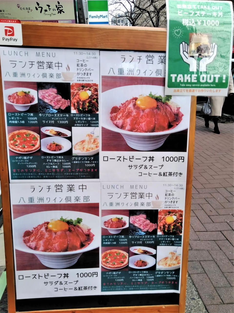 その隣の「八重洲ワイン倶楽部」のランチ『ロストビーフ丼』(1000円)などがお気に入りです。
