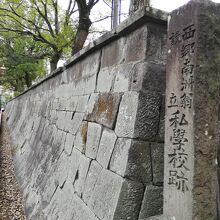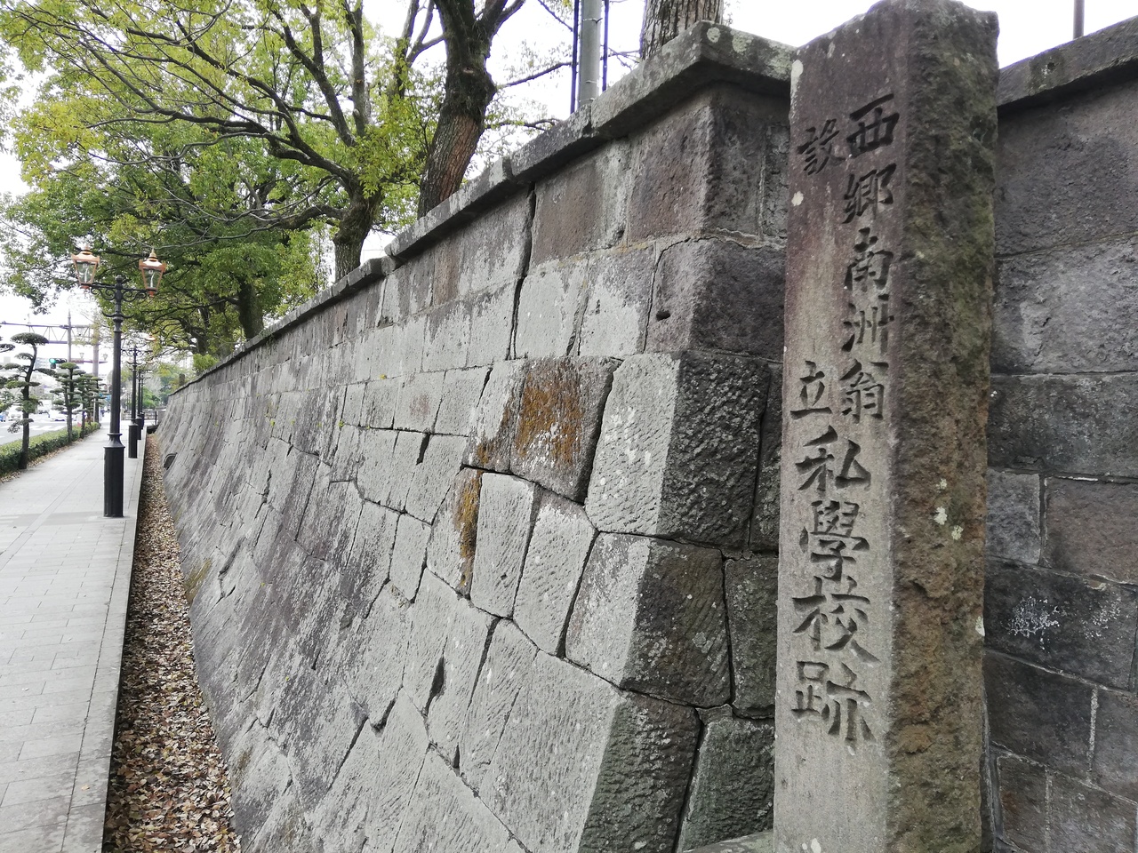私学校跡は 現在は医療センターになっており その前は 鹿児島県立病院 医療大学校などを経て、今の 医療センターとなっている。 西郷隆盛終焉の地からほんの数百メートルしか離れていない場所である 。 そして おそらくこの外壁は 当時のままでのものではないであろうか? 銃弾で打ち砕かれたような箇所がこの辺りにも数カ所あった。