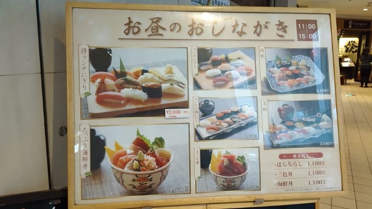 全国の主要百貨店などの展開する寿司やさんですが、ランチはかなりお手頃な価格でいただけます。ちらしは1100円からで大変お手頃です。握りも2000円で十分な量があります。お好みだとどうしても高くなるのでまずはランチで試すのがお得です