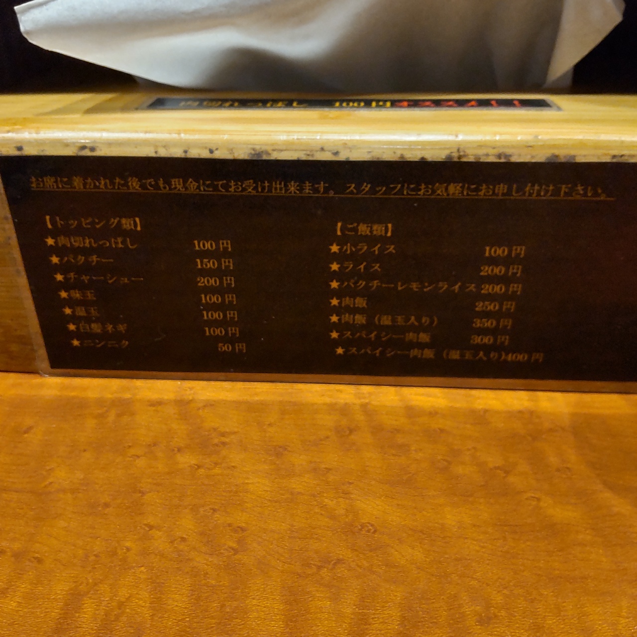 パクチーが好きなので、最初からたくさんのっているスパイスパクチーラーメンを食べました。もやしやニラも入っていて、野菜も摂取できた感がありました。トッピングもいろいろできるようです。