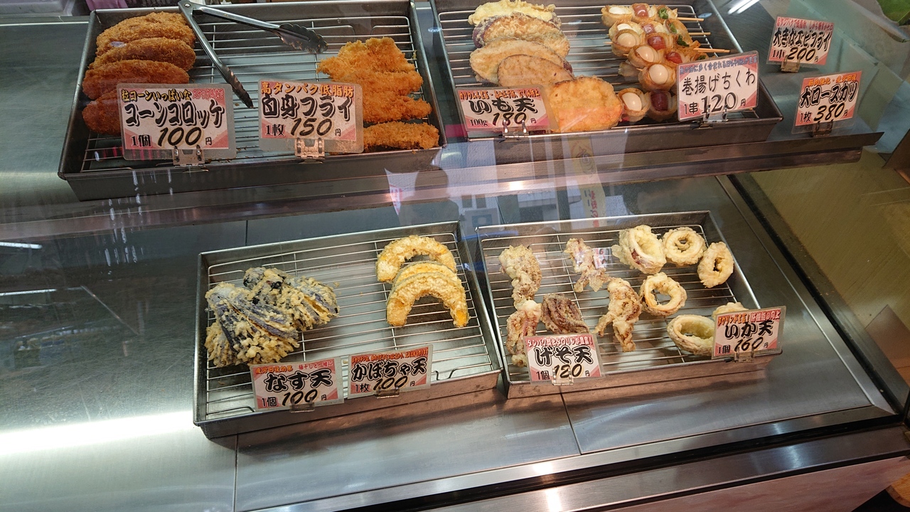1月下旬の週末午前中の時間帯に訪問しました。店内は、お客さんで賑わっていました。購入した、「三色串フライ」は、実際には三種類を上回る具材が串に刺された揚げ物。練り物と野菜の両方が味わえる楽しいお品で、おいしくいただけました。