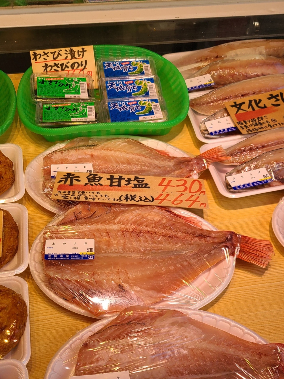 店先には干物などもありお値段がイオンさんと比べると安いのも良いですね。