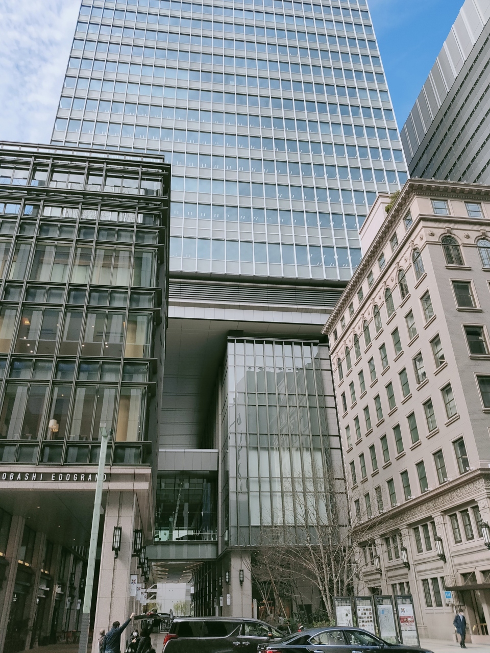 一方で春や初夏の爽やかな季節には近隣のビジネスパーソンが京橋エドグランに向かう人が結構います。それはこのビルには沢山のソファゥがあり、お弁当を買ってソファで食べる人が多いからです。