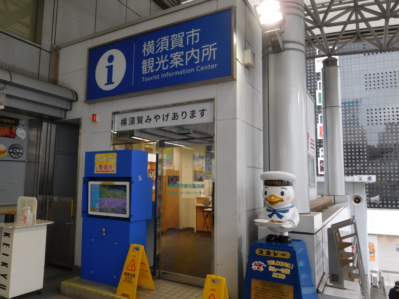 京急本線「横須賀中央駅」改札を出て左側にありました。店頭の、カレーを手にしたマスコットキャラクター「スカレー」がほのぼのとした雰囲気を醸し出していました。今回はよこすか満喫切符を使用して観光した後だったので、特に利用はしませんでしたが、観光の前に立ち寄れば、便利かと思いました。