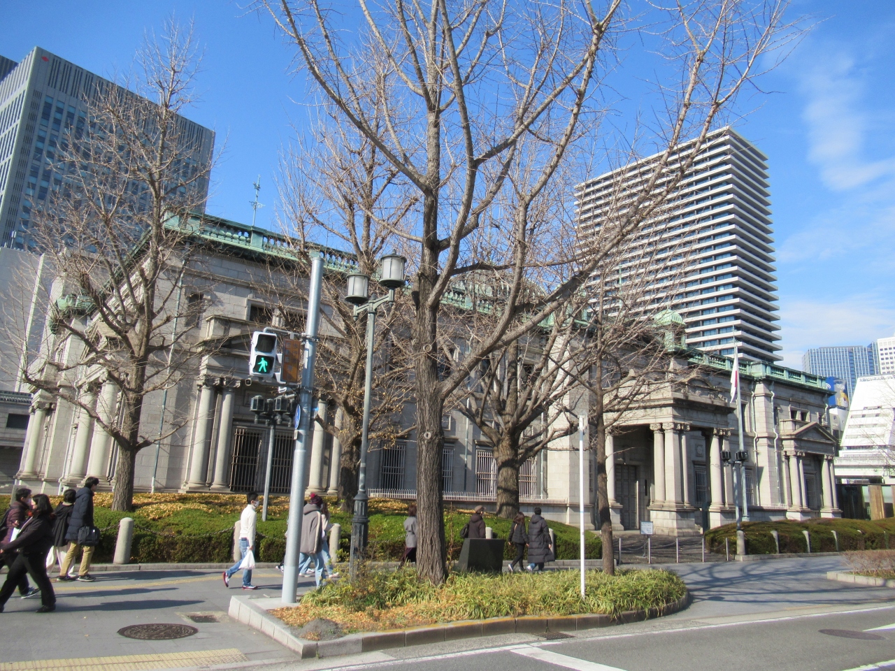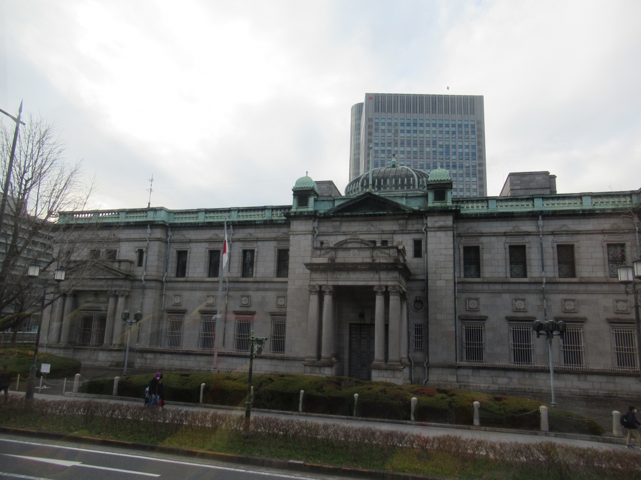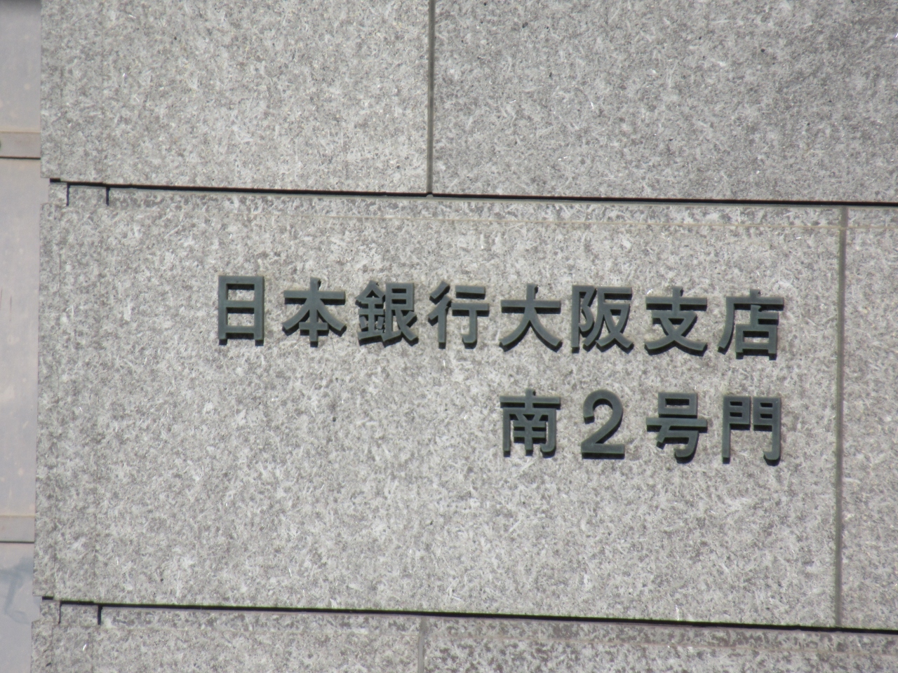 日本銀行の大阪支店は中之島の御堂筋沿いにあり、御堂筋を挟んで向かいには大阪市役所があります。