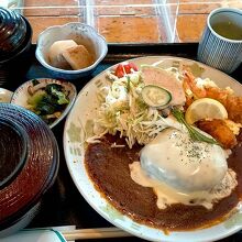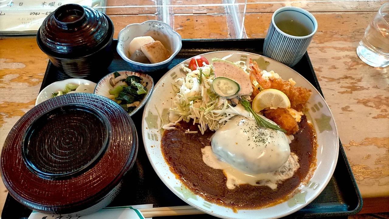 駐車場が有るので、車で行っても大丈夫です。この時期助かります。ランチはガッツリ洋食系なのですが、お味噌汁や、野菜の小鉢もセットになっていて、栄養もありますので、嬉しいです。フライのタルタルソースもとっても美味しくてお腹いっぱいになりました。