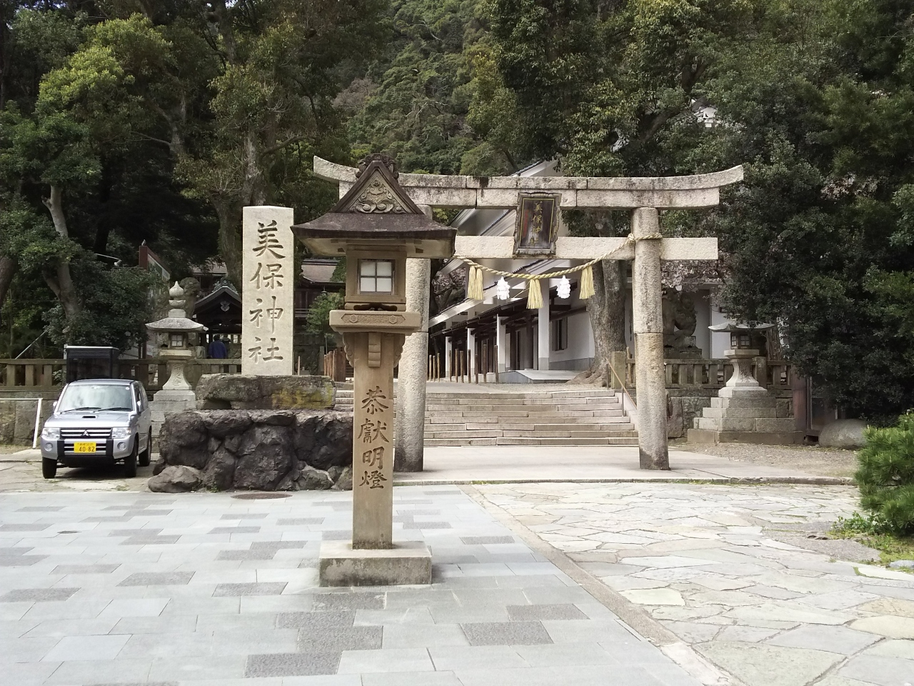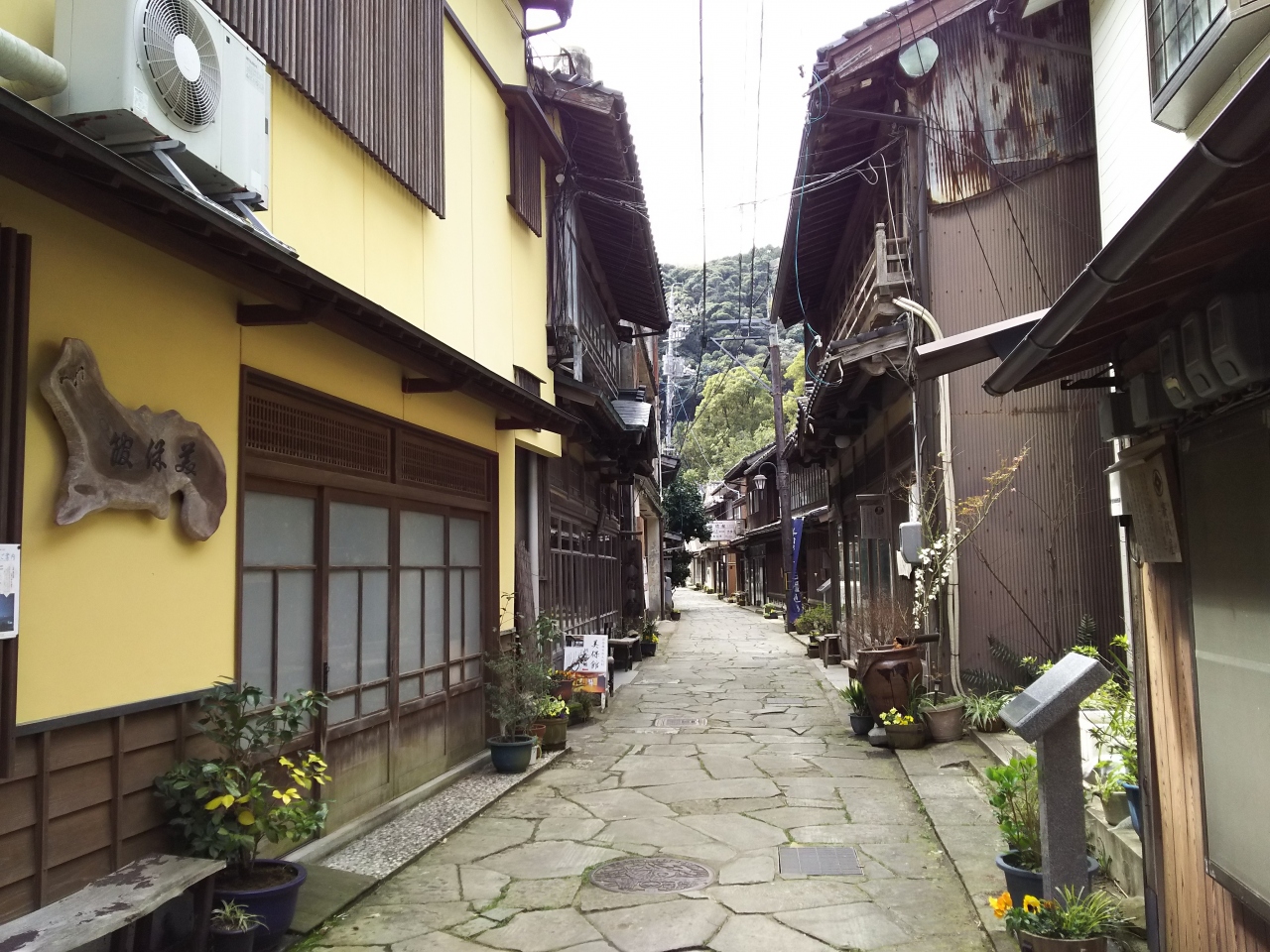 島根半島の東端には、全国えびす社約三千の総本宮の三保神社があります。境港大橋のたもとから県道2号線を東に車で10数分程走ると、かつて北前船の寄港地だった漁港があり、そのすぐ左側に神社が見えます。歴史ある神社で、商売繁盛、海運などにご利益があり、出雲大社との両参りでご利益は倍加するそうです。本殿参拝後、神社の東側にある小さな路地、青石畳通りを歩きました。古い旅館や小さな店が並び、雰囲気満点です。
