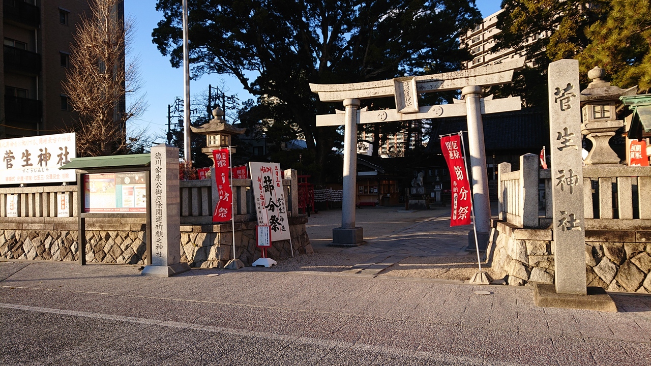 1月末の夕方の時間帯に訪問しました。今回の訪問で特に印象に残ったことは、節分祭開催の掲示がなされ、節分祭の旗が、風にはためいていたこと。節分に行われる「豆まき」には、魔よけ・厄よけ、の意味があるとのこと。現在の時勢にふさわしい行事であり、無事行われると良いな、と感じました。