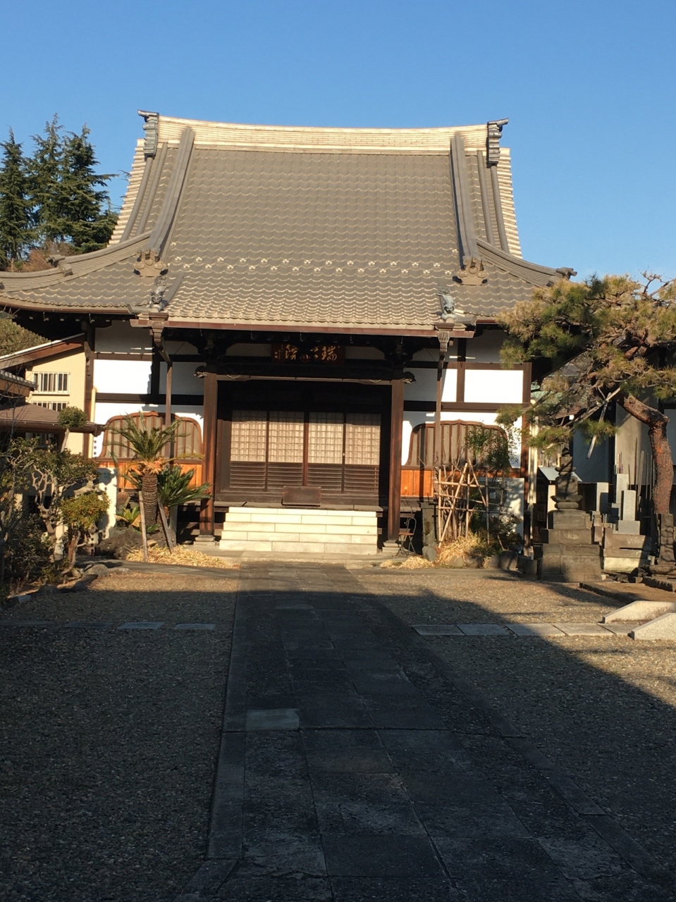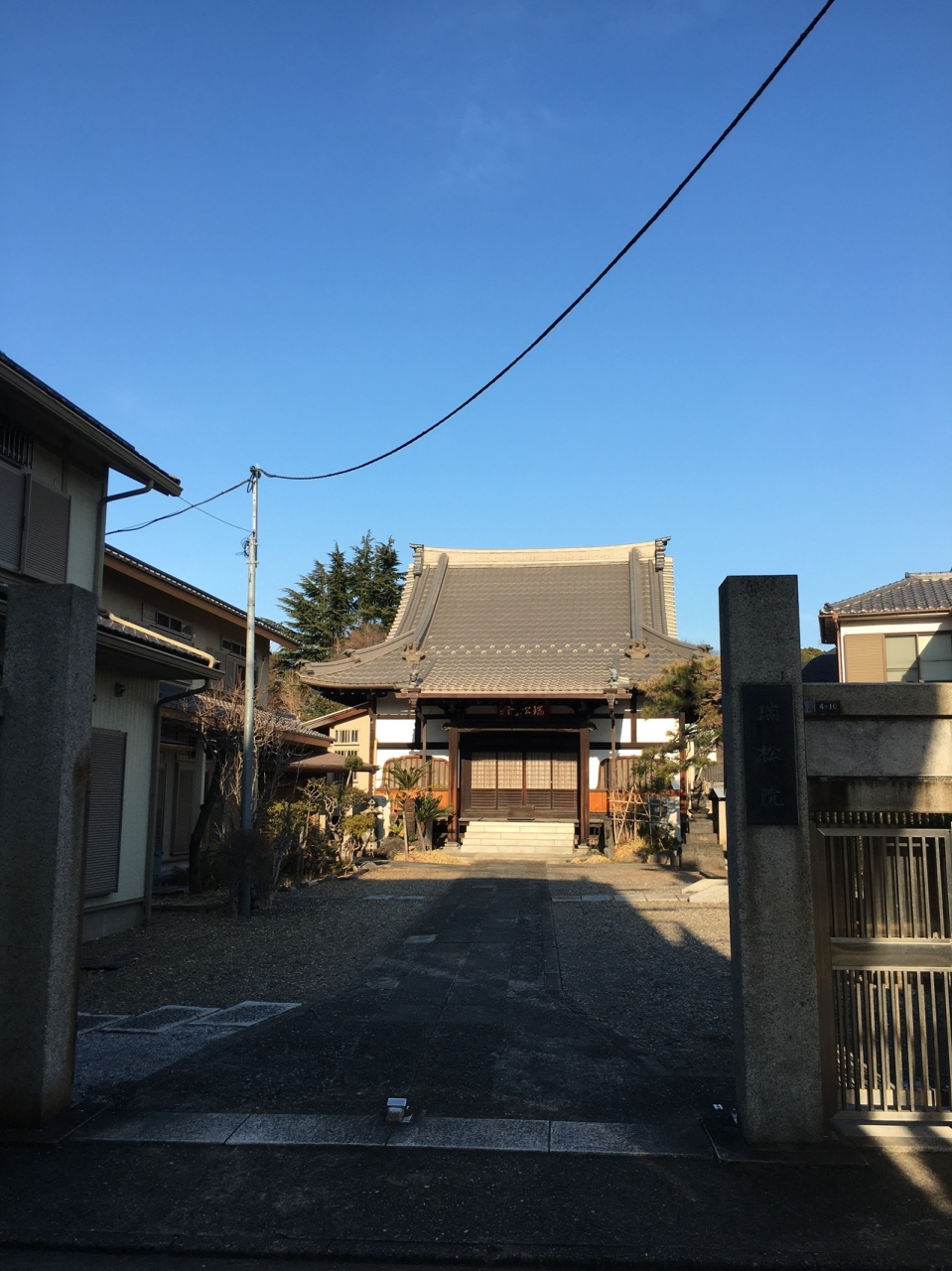 門が住宅にあるような石の門で、境内に入ると左側には住居らしき建物がありました。大きな本堂で右側の松が見事で、左側には砂鉄がありました。本堂前の賽銭箱が寂しげな四角い木の賽銭箱で、後方がお墓です。観光寺ではないのでひっそりとしていました。