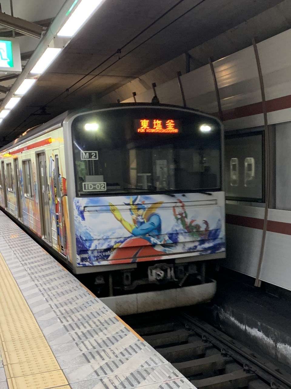 石ノ森章太郎さんの漫画が描かれた車両がたくさん走っています。