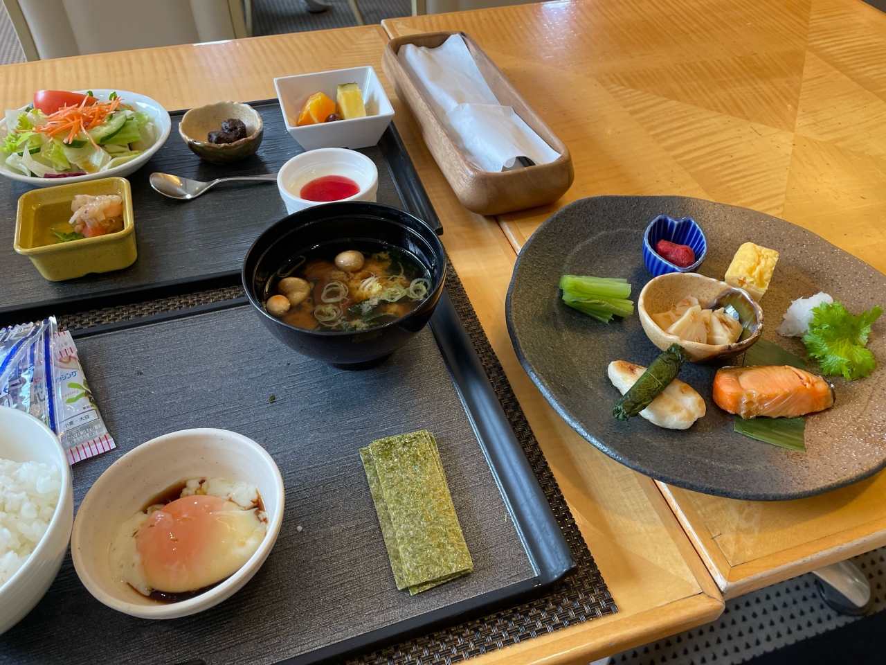 ビュッフェ形式ではなくて和洋のセットメニューからどちらかを選ぶ方式になっていました。和定食を選びましたが、少量ずつ様々な品物がお皿に並べられていて、おかずの量としては充分にありました。