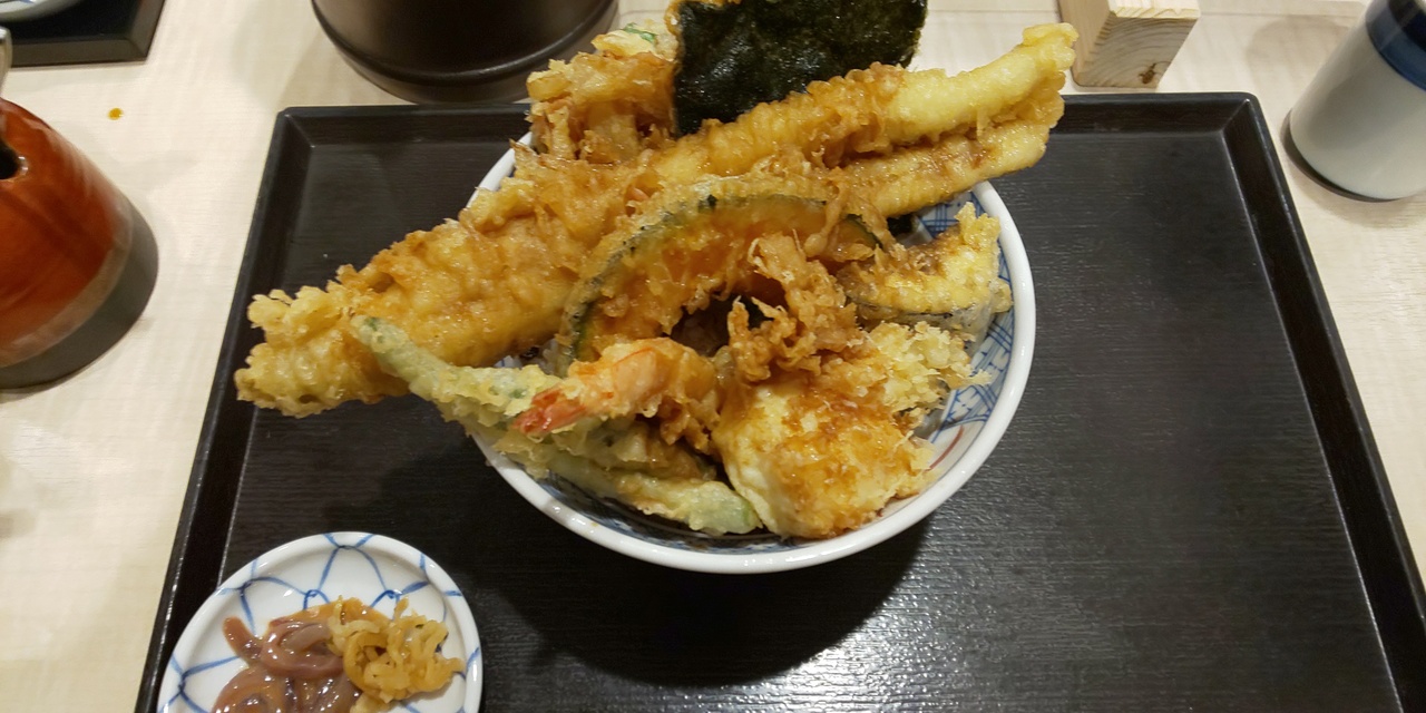 天丼をたべました。大きな穴子やエビが乗っていて、野菜も彩りがよくサクサクにあがっていました。タレの甘さもちょうどよく、ご飯にとても良く合います。