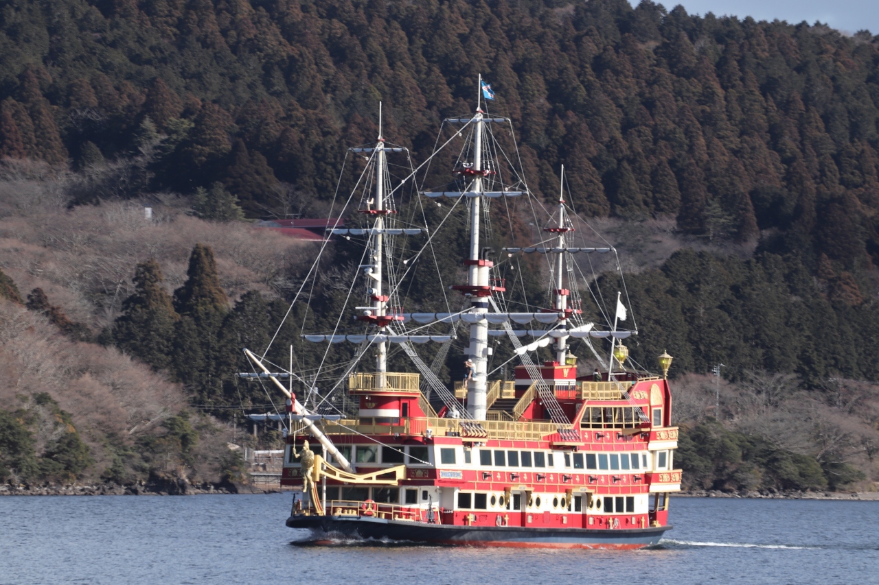 箱根町~元箱根~桃源台~箱根町と芦ノ湖を周遊する観光遊覧船です。船は海賊船の装飾で見栄えもよく、人気です。箱根周遊の一部として利用したり、マイカー観光の場合などは一周して同じ乗り場に戻ることもできます。