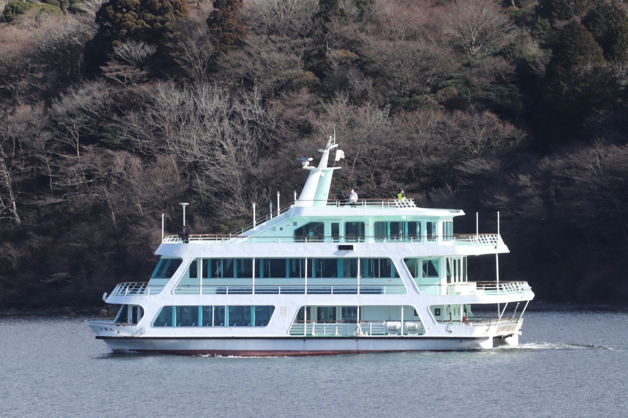 箱根芦ノ湖の遊覧船のひとつ、西武、伊豆箱根グル―プです。船は双胴船ですが、小田急、箱根登山グループの海賊船に比べると地味な印象でした。箱根園や駒ヶ岳ロープウエイ利用の場合のターミナル、箱根園はこちらしか寄港しません。