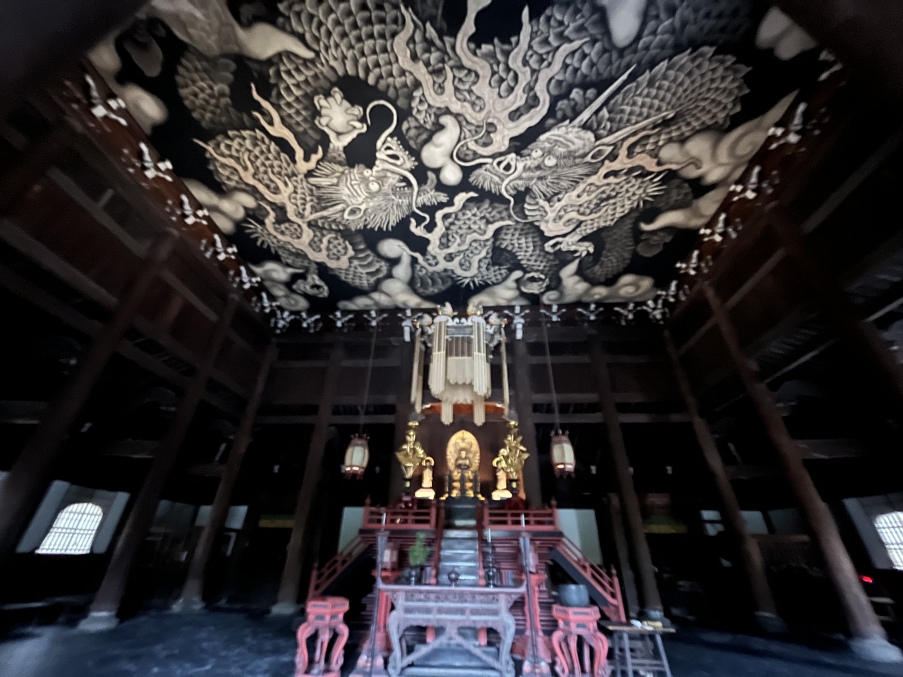 栄西が開山した京都最古の禅寺です。境内は自由に散策ができますが、方丈と法堂は拝観料が必要でした。本坊で受付をして、そこで靴も脱いで拝観します。方丈の襖絵や庭、そして法堂の天井画「双龍図」が見事でした。双龍図は意外にも新しいもので、創建800周年を記念して2002年に描かれたものだそうです。全体として見所が多いので、じっくり時間を取って拝観することをお勧めします。