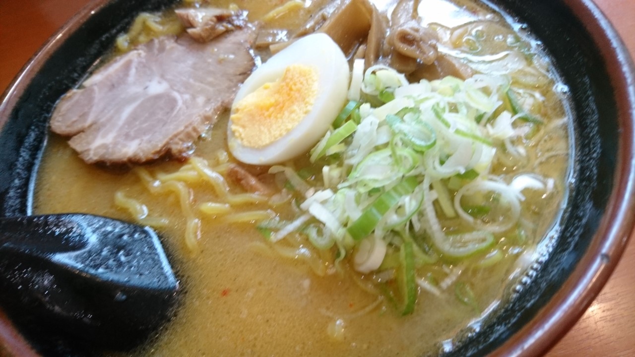 JR札幌駅の北口の寂しいところにあるラーメン店です。駅に近い割には、寂しいところです。ここに三代目月見軒札幌駅北口店さんがあります。中は、壁に沿ってぐるっとカウンター席のような一人がけと真ん中にテーブル席がありました。店内は、お客さんはまばらでしたが、窓際のカウンター席に案内されました。味噌ラーメンを注文、少し待つと味噌ラーメンの登場です。濃厚な味のスープに縮れ麺が合います。月見軒と言う店名だけあって、しっかり中まで茹でらさった卵が入っていました。チューシューも厚く、それでいて柔らかいおいしいものです。具は、他にメンマとネギ。バランスの良い一杯でした。