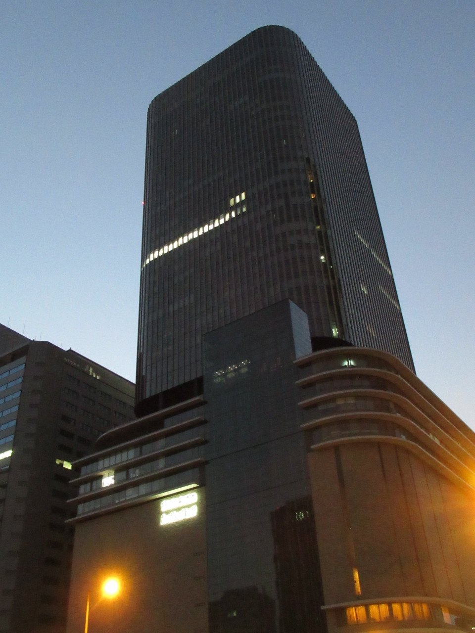 四ツ橋筋の東側にあるタワーは2012年に完成し、低層階にはフェスティバルホールがあって、朝日新聞社なども入っています。