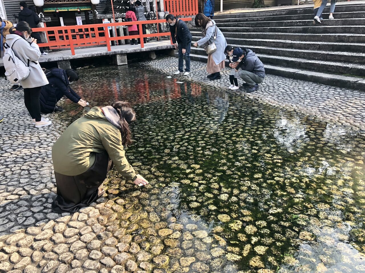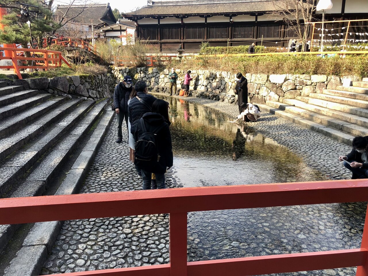 とにかく静かで、空気が冷たく重く感じる神聖な境内です。横を流れる御手洗川は、みたらし団子の発祥となったそうです。その神聖な御手洗川にさらして見る「水みくじ」も有名ですね。妻は、大吉を引き当てました。僕は末吉でした。