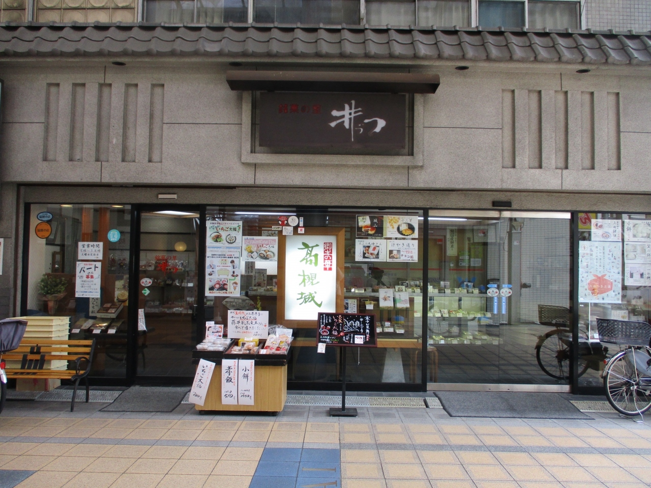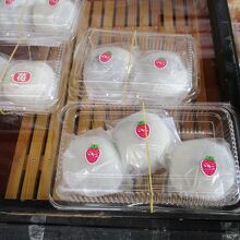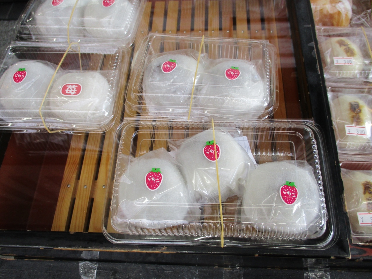 高槻センター街の西側の入り口近くにある和菓子屋さんです。店頭にもおいしそうなお菓子が並んでいました。こちらのお店のいちご大福を藤井聡太竜王さんがおやつで食べたそうです。つぶあんとミルクあんがあり1個180円です。商品の上に貼られたいちごのシールがかわいかったです。