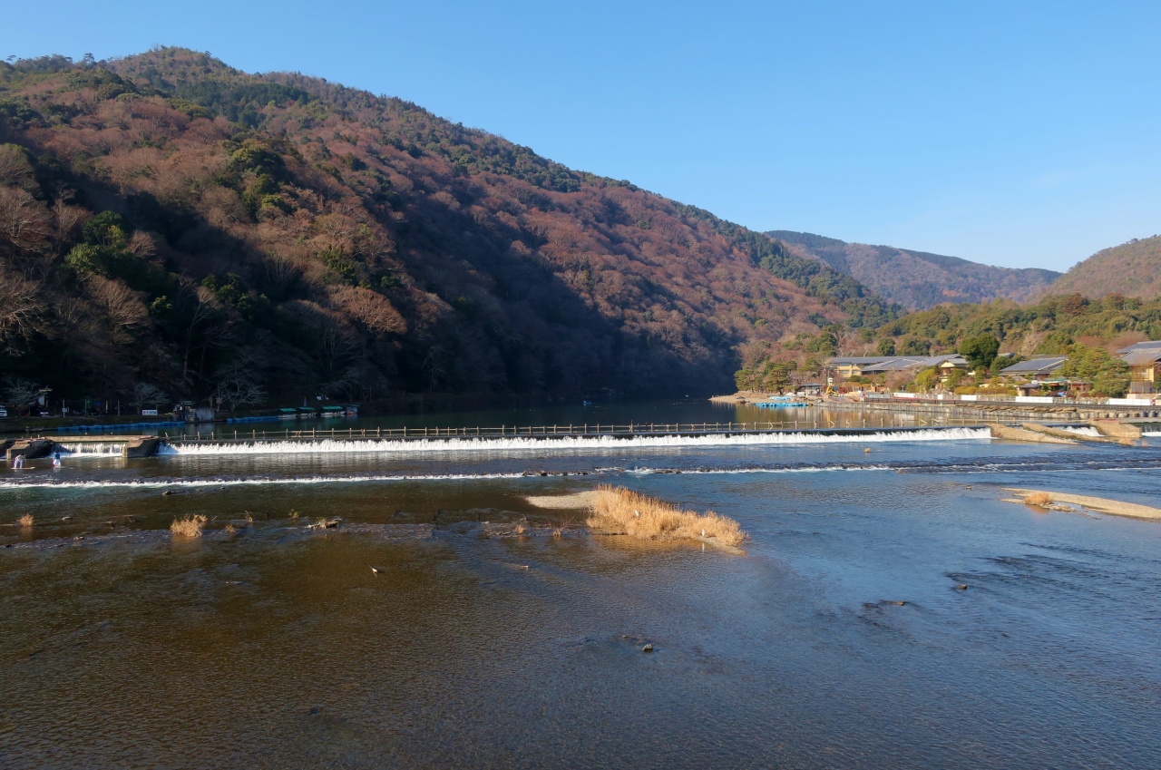 河川法上ではすべて桂川らしいが、実際はエリアによって呼び名が変わっている。桂川は水源から亀岡市に流入すると大堰川と名を変え、その後、保津川となる。嵐山付近で再び大堰川となり、その下流で再び桂川に。鴨川を合流し、最後、大阪府との境界辺りで淀川に流入する。観光名所となる大堰川は嵐山付近、渡月橋の前後だ。ここは川遊びができるよう整備されており、平安貴族も船を浮かべて趣を満喫した。また、嵐山の渓谷美も、この川の存在があってこそだろう。