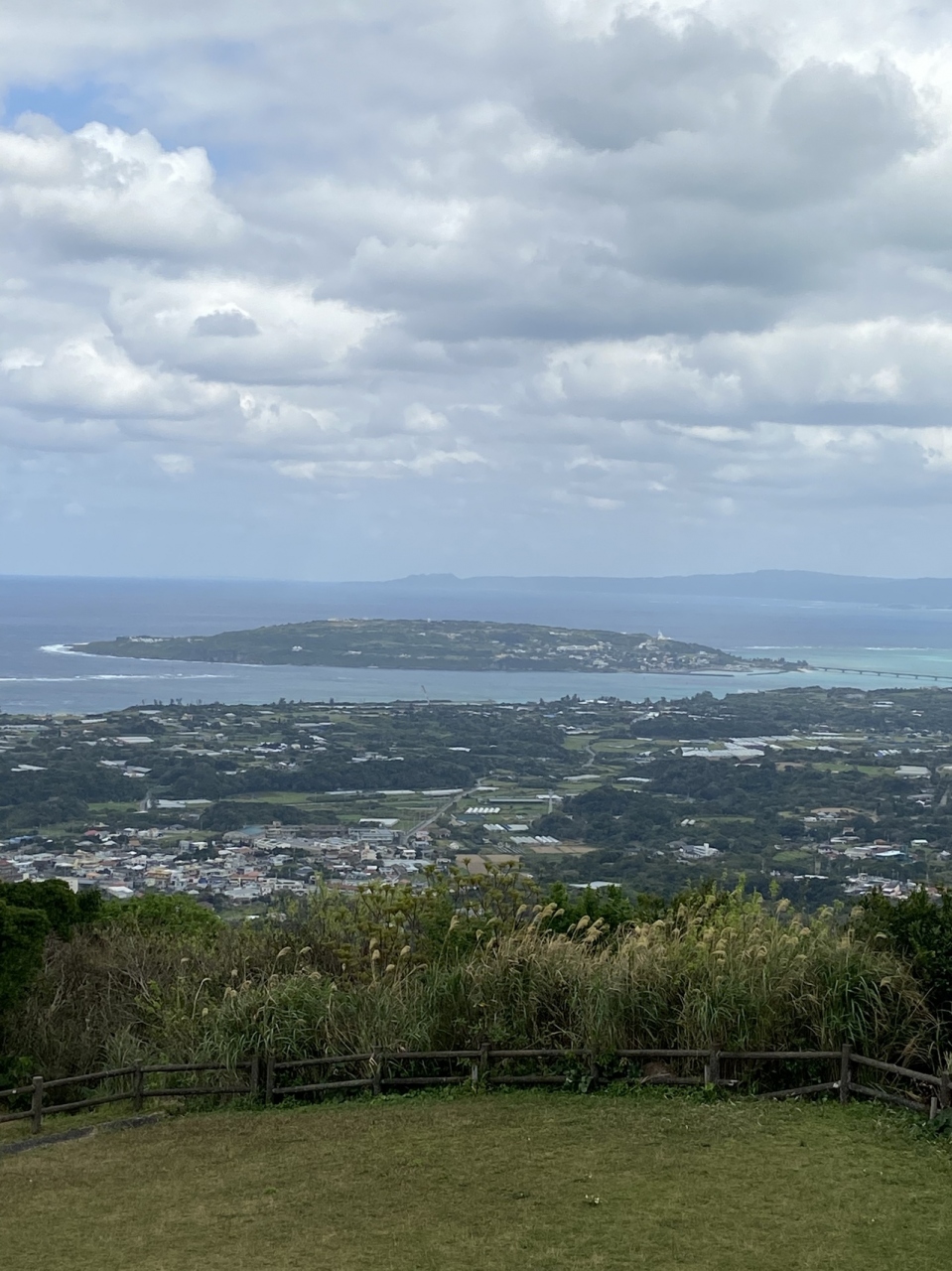 グルーッと沖縄北部の海が見渡せる素敵な展望台。橋を渡って行く古宇利島もいいけど高いところから全景を見るのもいいですよ~道中道幅がとても狭いので運転にはくれぐれもご注意下さい。芝生のある公園には子供たちが楽しめる遊具もありますよ!この日は曇っていたけど気持ち良かったです。