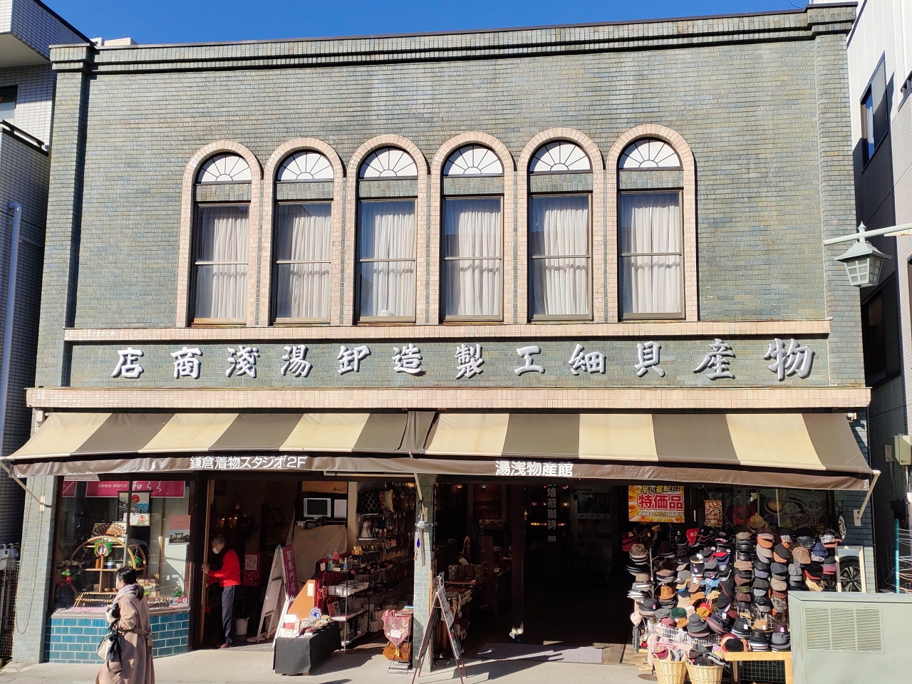 湯浅物産館は、若宮大路沿いの鶴岡八幡宮近くに位置しています。昭和11(1936)年築で、国登録有形文化財です(有形文化財は令和3年に登録!)。