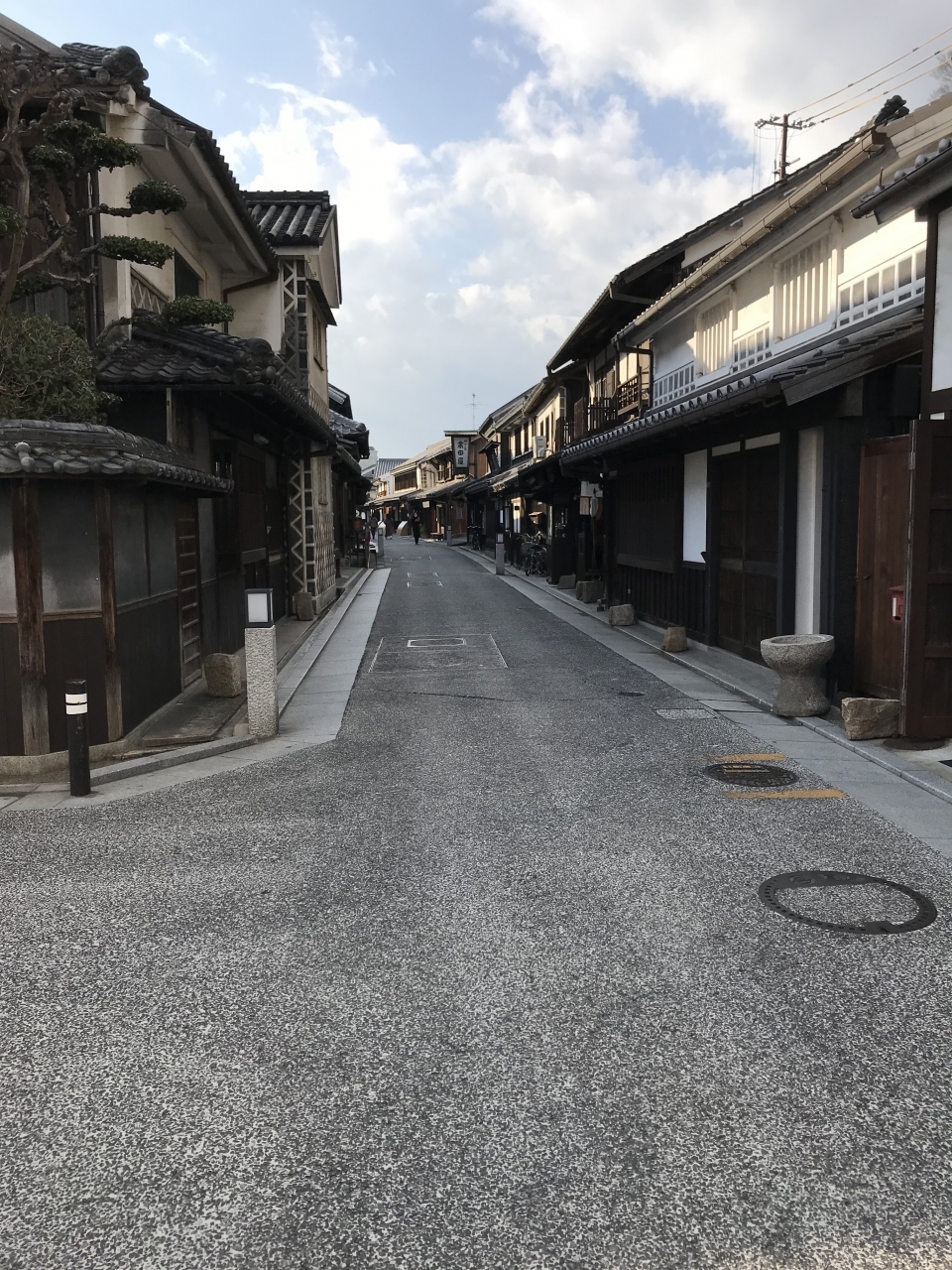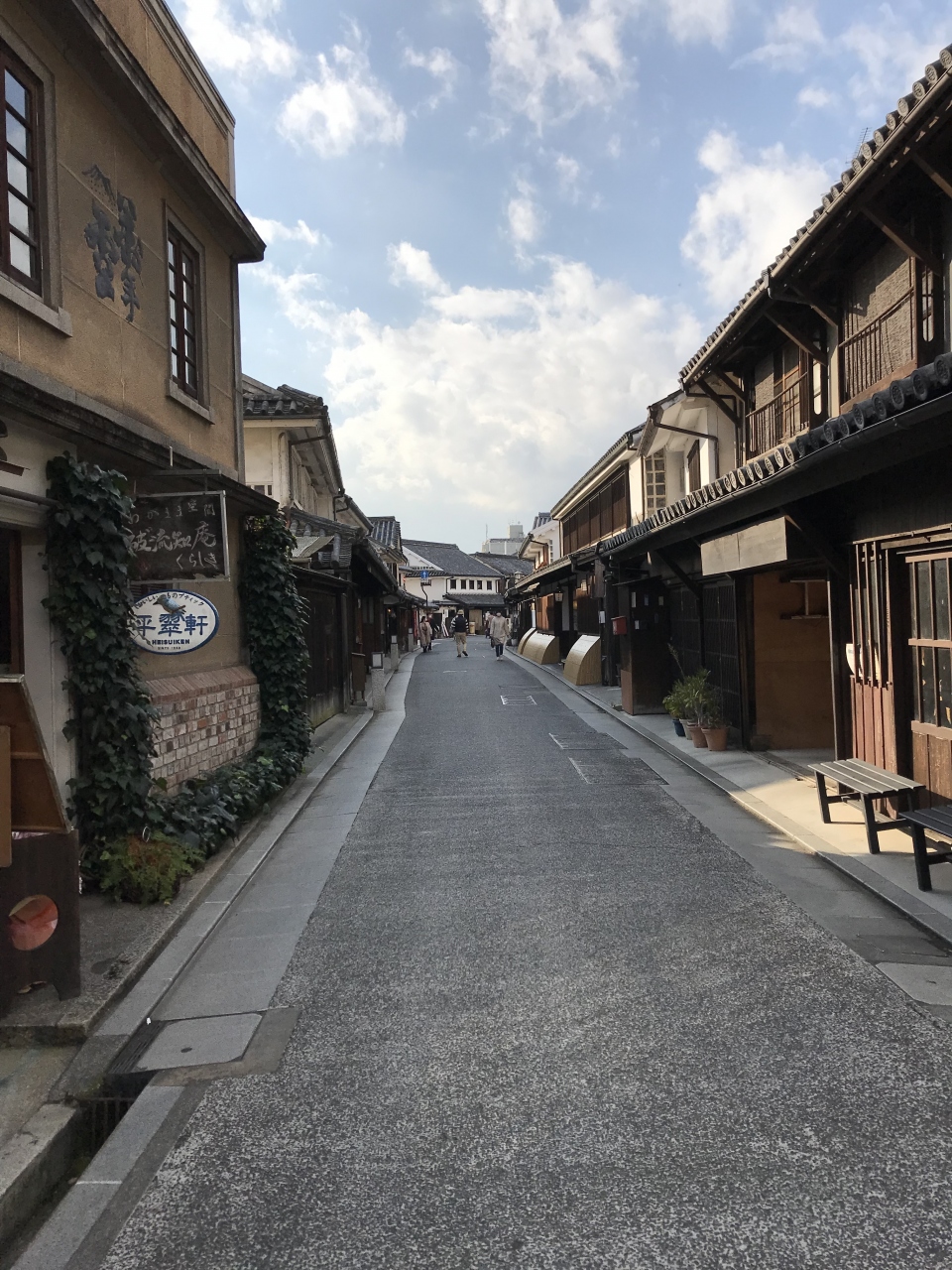 倉敷駅方向からえびす商店街のアーケードをそのまま歩き進むと本町にたどりつきます。本町は倉敷川沿いの美観地区の北側にある通りです。昔ながらの風情を残した趣のある建物が連なっています。倉敷川沿いとともに倉敷観光では外せない場所です。