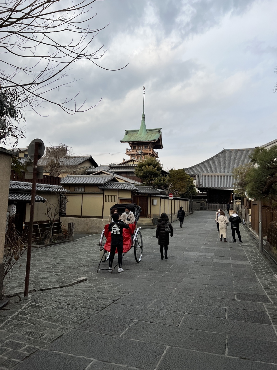 東山でも有数の観光地でもあるねねの道。電柱も地中化されていて景色もよいですし、人力車などもいて非常に観光地として風情もあります。昼は混雑することも多いのですが、夕刻以降はまずやっている場所がないので、人もいなくなります。