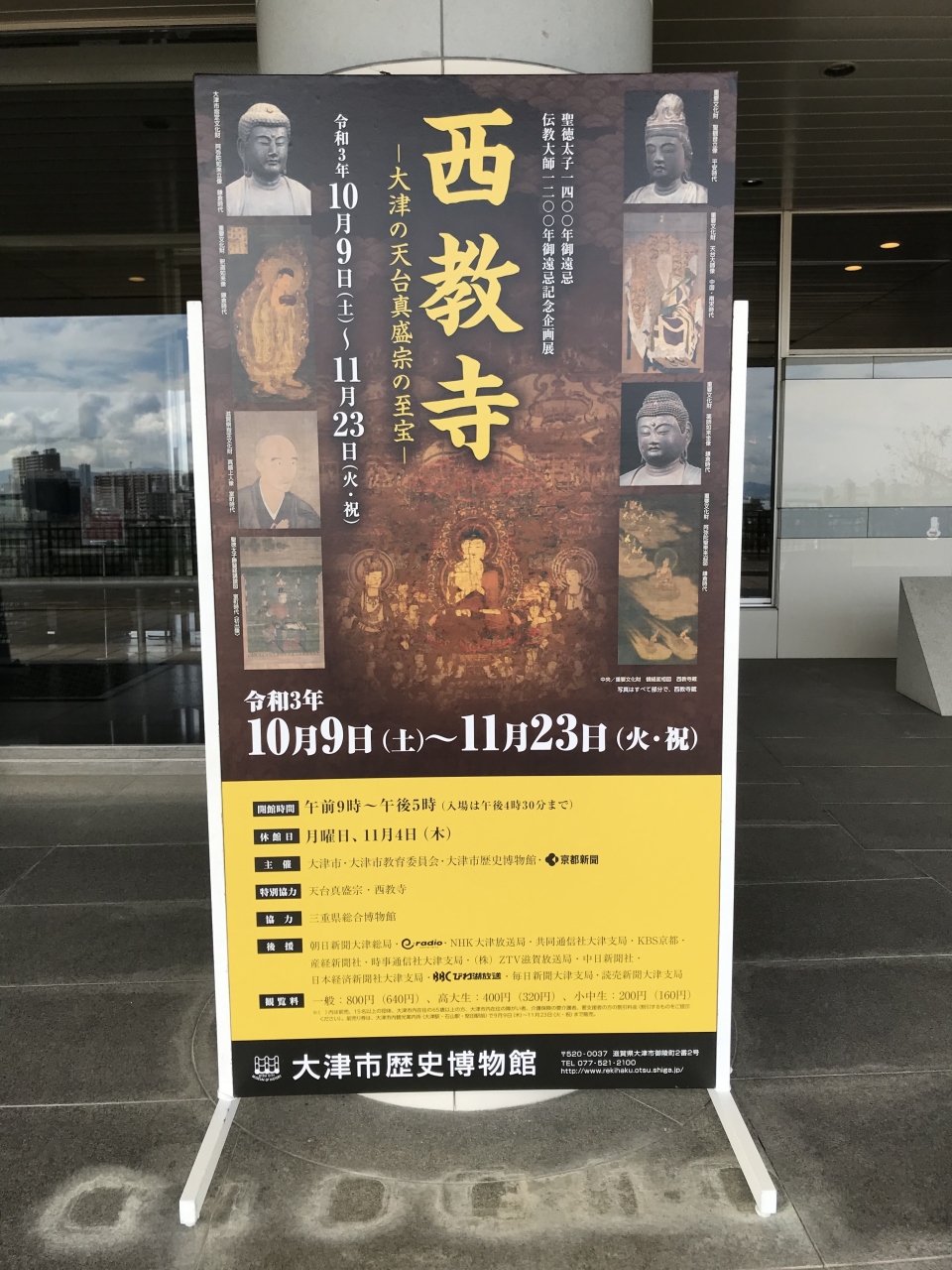 大津市歴史博物館は、JR大津京駅から徒歩で約15分、大津市民文化会館の南隣に位置し、三井寺境内から見ると北隣に位置しています。私が訪れた際には、聖徳太子1400年御遠忌・伝教大師1200年御遠忌記念企画展「西教寺 ―大津の天台真盛宗の至宝―」を開催していました。