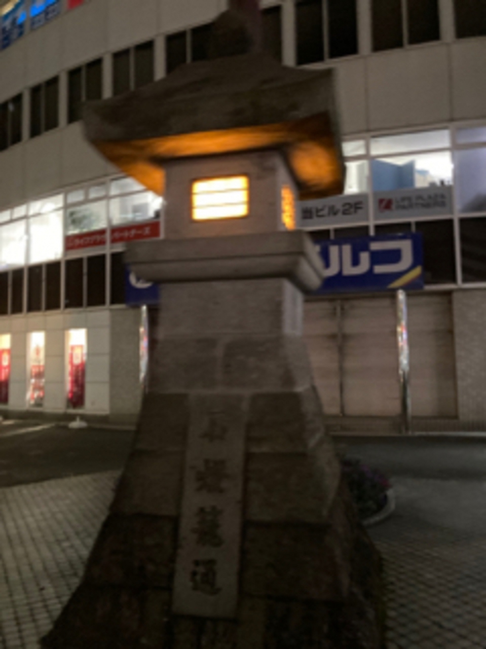 天文館から数分歩いだ場所にあるいづろ通りの一角にたっている石燈籠です。