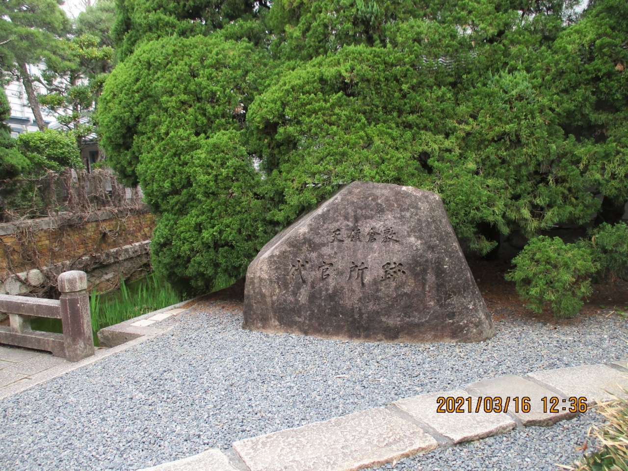 倉敷アイビースクエアの中に代官所跡の石碑があります。大きな庭石のような石碑に代官所跡と彫られていました。天領時代の代官所から、倉敷紡績の工場という歴史があるという事を知りました。近くには、井戸跡や内濠遺構などもあります。