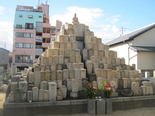 ただ、本堂向かって左手には、東南アジアの寺院を彷彿とさせてくれるようなピラミッド型に積まれたお墓があったりして、真言宗のお寺らしく、頂部には弘法大師のお姿も見られますので、ある意味八十八か所霊場と同じように同行二人の心境で有難く参詣させて頂きました。