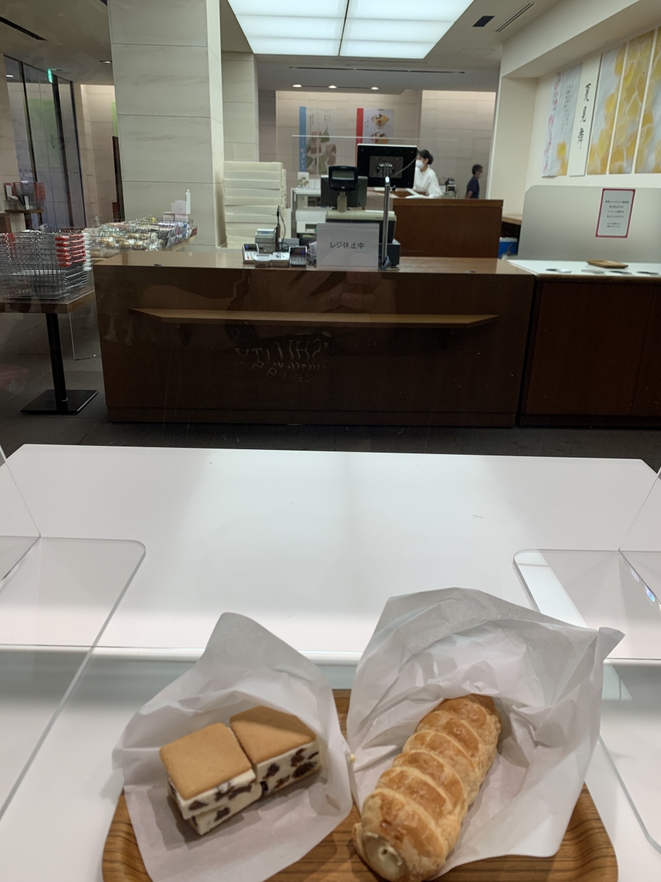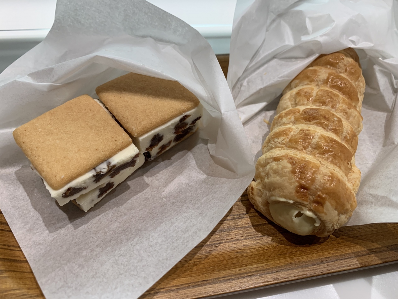 帯広駅から500mほど北にある、製菓メーカー六花亭の本店です。店内は美味しそうなスイーツが山積み。六花亭は、昭和8年(1933年)に函館の老舗製菓「千秋庵」の暖簾分けとして帯広で創業し、昭和52年(1977年)に暖簾分けを返上して六花亭に改名したそうです。2Fに喫茶室があるのですが、1階にもちょっとしたイートインコーナーがありますのでここで手軽にいただけます。六花亭と言えば「マルセイバターサンド」が有名ですが、せっかくなのでカウンターで売っていた「マルセイアイスサンド」と「サクサクパイ」をいただきます。やはり当地の乳製品は美味いですね。賞味期限3時間のサクサクパイは帯広でしか食べられないそうです。