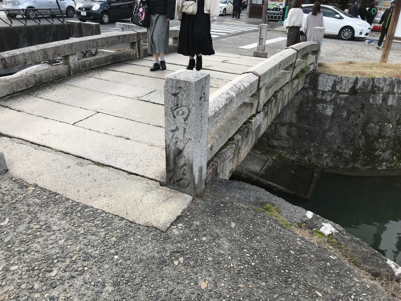高砂橋は、倉敷駅方面から美観地区に入り、川沿いに歩いていくと美観地区の最も奥で、美観地区の終わる場所にかかる石橋です。元々は大原美術館の前にある今橋として1830年頃に架けられ橋を、今橋架け替えに伴い、今の場所に移設されたものです。
