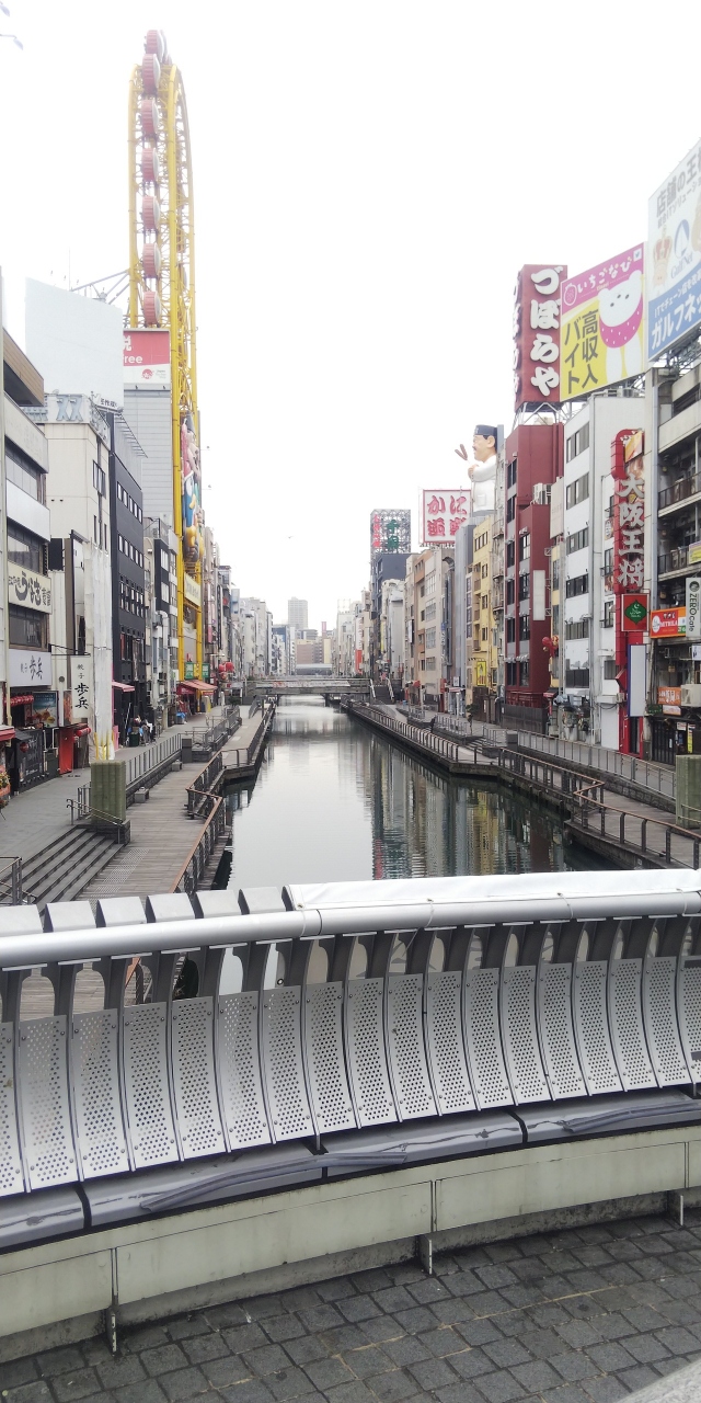 道頓堀川は大阪・ミナミを流れる有名な川です。日本橋や道頓堀橋、戎橋など有名な橋がかけられています。阪神タイガースが優勝すると飛び込むヒトが出るのがこの川です。90年代はゴミがぷかぷかしていた気がしますが、最近はキレイになりました。