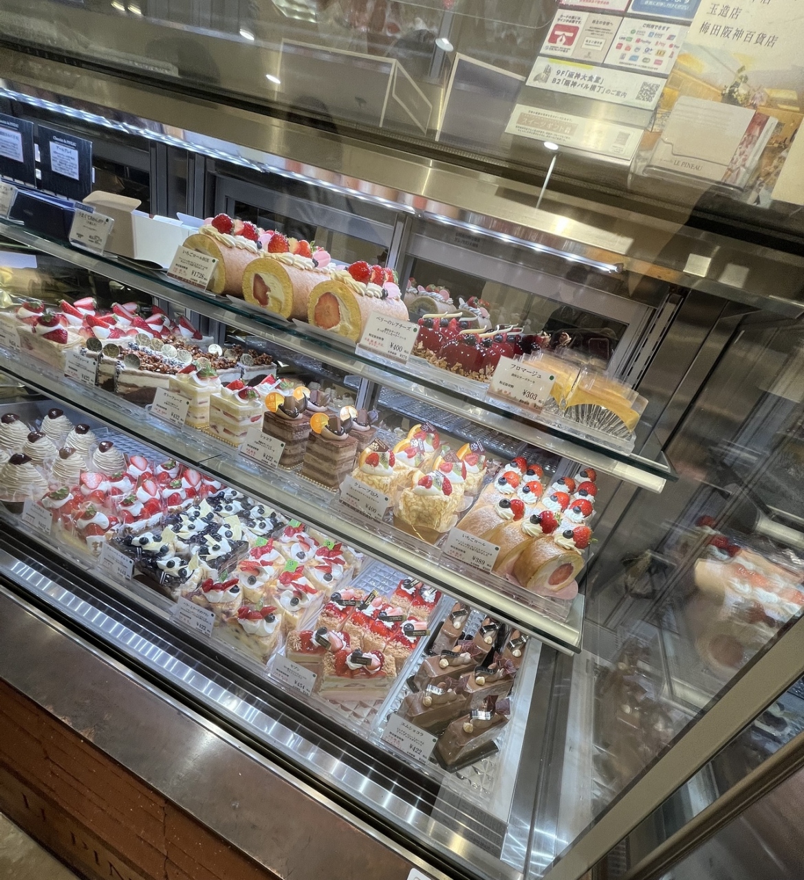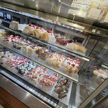 ショーケースには ケーキがキラキラ輝いています。どれも美味しそう〜