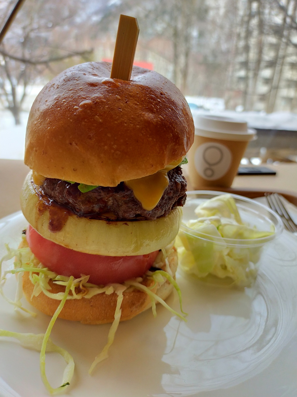 数量限定のハンバーガーはまだあったので、テイクアウト用にパンを買って、ハンバーガーを2階のイートインでいただきました。