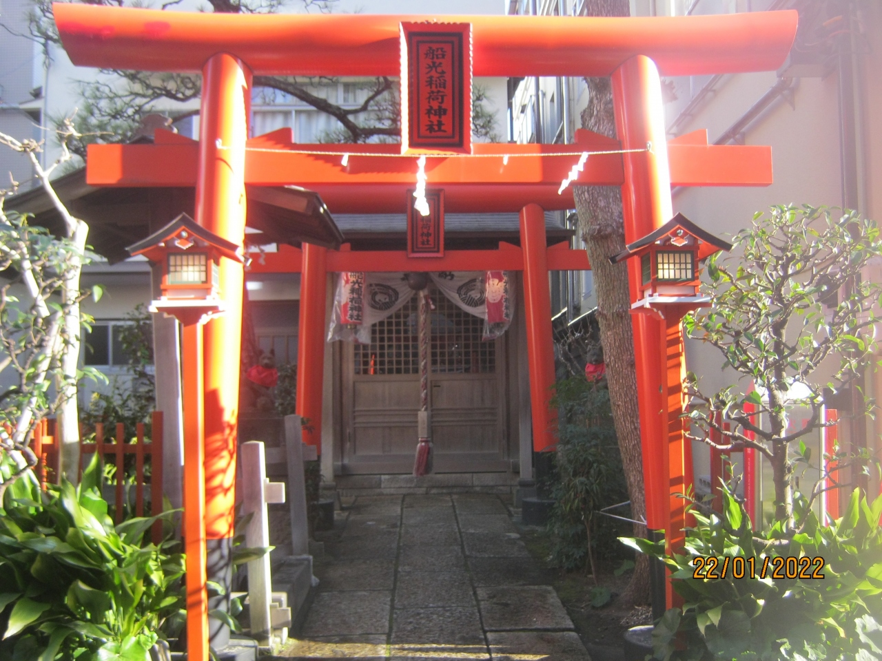 この船光稲荷神社は青山通りから南東に入る長者丸通り沿いにあります。地下鉄銀座線外苑前駅から南に10分程度の場所にあります。住宅街にある小さな神社です。この神社は17世紀後半にこの地の長者が勧請したものです。そのために長者丸神社ともいわれます。それが通りまで残っています。