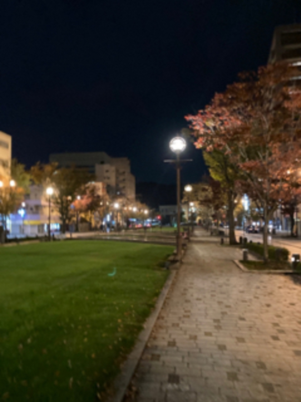 夜になると、人気がなくなり、寂しい雰囲気ですが、ポツリポツリとした街灯が綺麗です。