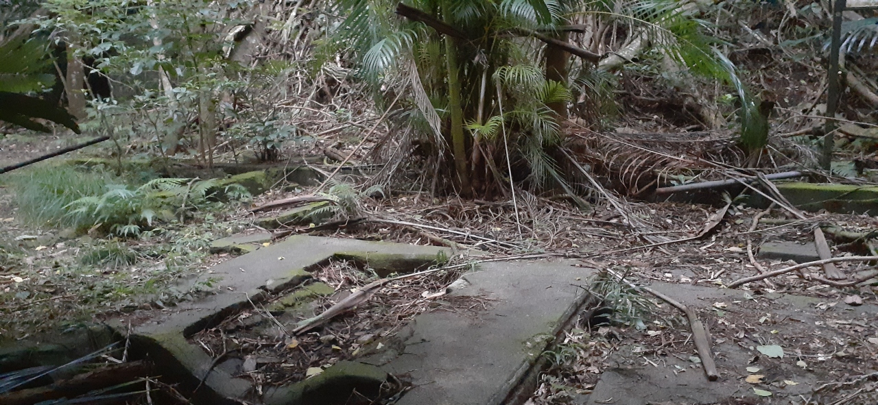 自動車道からジャングルのような森の中の遊歩道を歩いていくと、兵営跡などがありました。