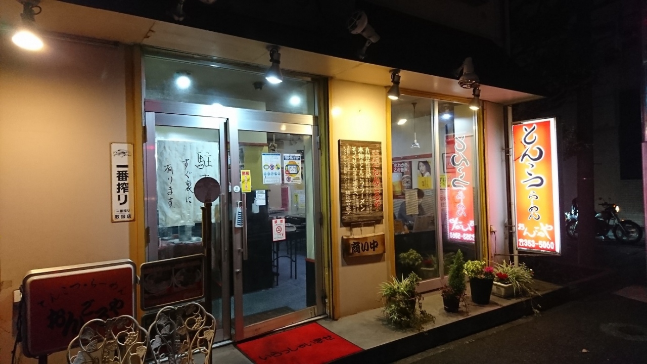 東京メトロ東西線浦安駅から徒歩5分程度、浦安市猫実5丁目の浦安やなぎ通り沿いにある豚骨ラーメン屋さんです。夕食でらーめん750円をいただきました。具はチャーシュー、海苔、ゆで卵半分、モヤシ、ネギで、極細ストレート麺と濃厚豚骨スープの一品です。豚骨特有の臭さとコクのあるスープはまさに本格的な豚骨ラーメン。最近上品なスープの豚骨ラーメン屋さんが増えてきていますが、やはり豚骨ラーメンには豚骨の臭さがあった方が美味しいですね。