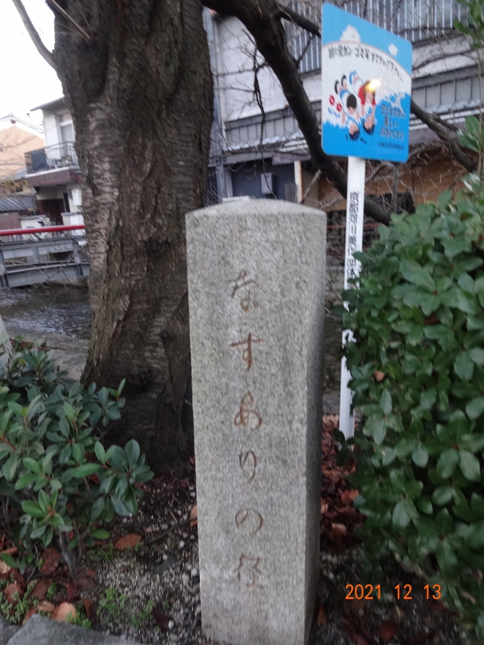 白川に沿って歩いている時に、なすありの径という石碑がありました。