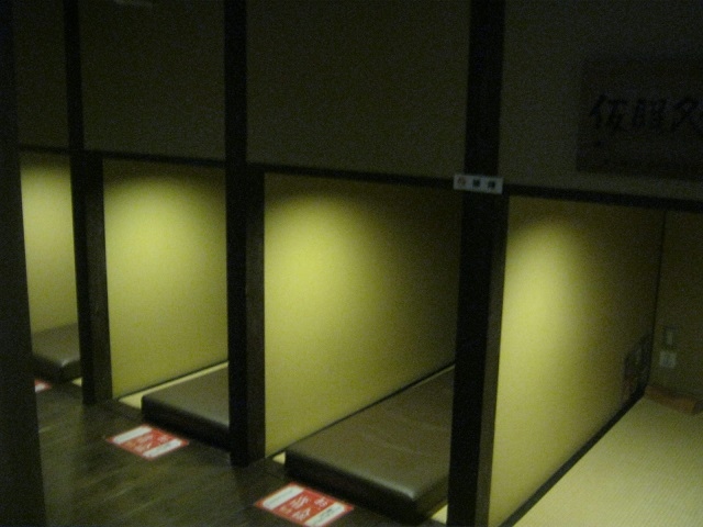 そして、人気があるので19時過ぎの入店でしたが、お風呂はかなり混雑していました。この分では休憩室もかなり混むだろうなと思い、早めにお風呂を上がって、休憩ブースへ行きましたが、この施設はこの休憩ブースが素晴らしくて、個別に仕切られたよくあるキャビンタイプの宿のような区画があって、カプセルホテルのような感じで休憩できる箇所があります。ここは人気があって、特に週末などは早い時間帯に行かないとすぐに埋まってしまうようでしたが、この中で充電が出来たりするのも凄く有難くて、結局湯上り後も閉店間際の午前2時頃まで居座ってしまいました。